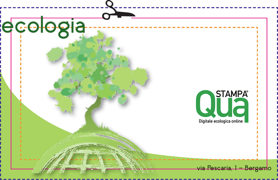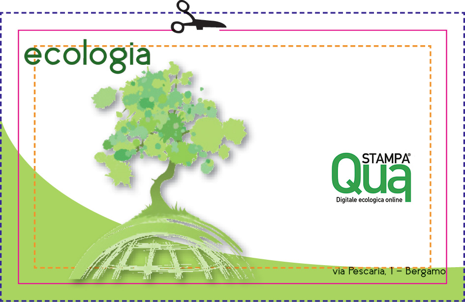 Al fine di garantire ulteriormente la qualità del lavoro vi chiediamo di aggiungere tre millimetri ad ogni lato del formato (es. A4 21x29,7 cm -> 21,6x30,3 cm) e di "sbordare" con la grafica o con il colore di sfondo.